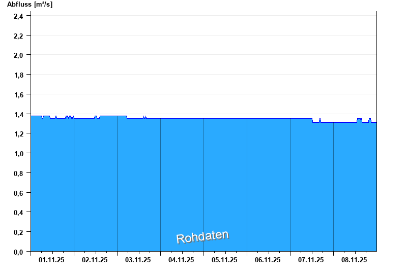 Der Pegel wird durch Baumaßnahmen unterhalb beeinflusst (Rückstau). Entsprechend sind die Abflusswerte nicht korrekt