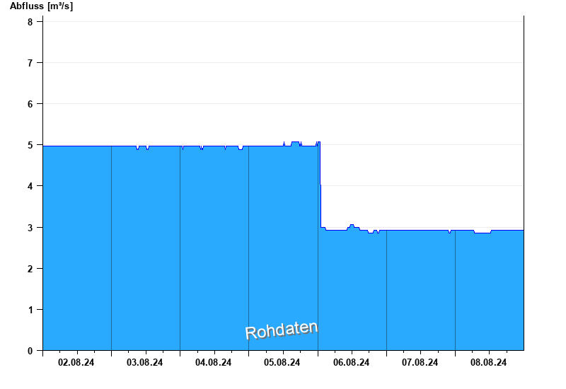 Der Pegel wird durch Baumaßnahmen unterhalb beeinflusst (Rückstau). Entsprechend sind die Abflusswerte nicht korrekt