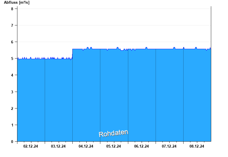Der Pegel wird durch Baumaßnahmen unterhalb beeinflusst (Rückstau). Entsprechend sind die Abflusswerte nicht korrekt