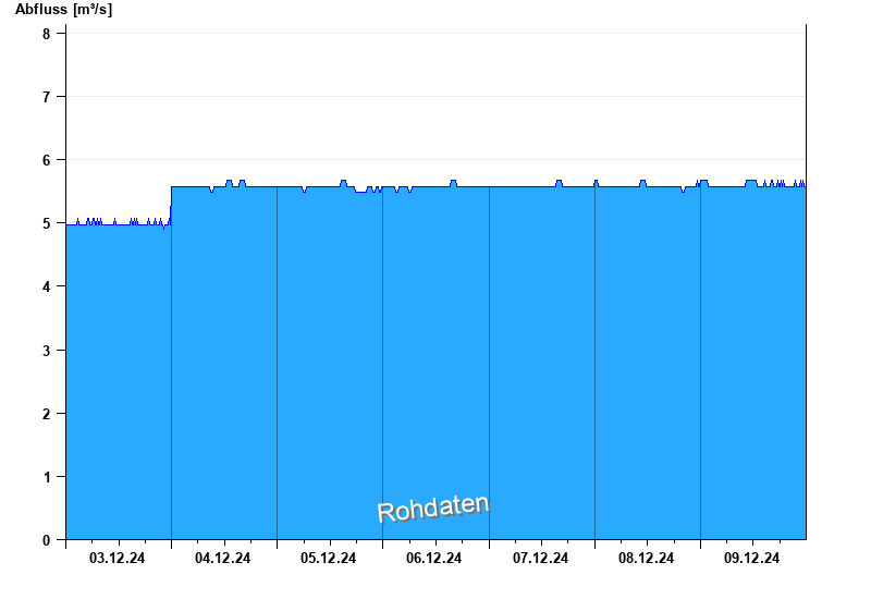 Der Pegel wird durch Baumaßnahmen unterhalb beeinflusst (Rückstau). Entsprechend sind die Abflusswerte nicht korrekt