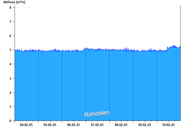 Der Pegel wird durch Baumaßnahmen unterhalb beeinflusst (Rückstau). Entsprechend sind die Abflusswerte nicht korrekt