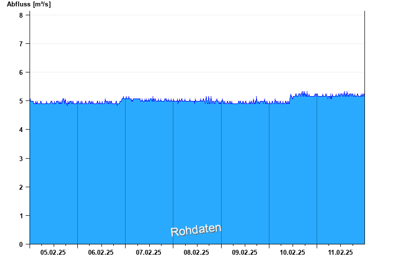 Der Pegel wird durch Baumaßnahmen unterhalb beeinflusst (Rückstau). Entsprechend sind die Abflusswerte nicht korrekt