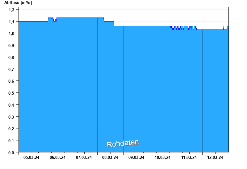 Der Pegel wird durch Baumaßnahmen unterhalb beeinflusst (Rückstau). Entsprechend sind die Abflusswerte nicht korrekt