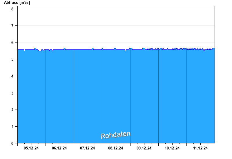 Der Pegel wird durch Baumaßnahmen unterhalb beeinflusst (Rückstau). Entsprechend sind die Abflusswerte nicht korrekt