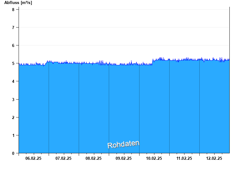 Der Pegel wird durch Baumaßnahmen unterhalb beeinflusst (Rückstau). Entsprechend sind die Abflusswerte nicht korrekt