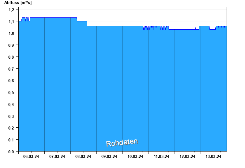 Der Pegel wird durch Baumaßnahmen unterhalb beeinflusst (Rückstau). Entsprechend sind die Abflusswerte nicht korrekt