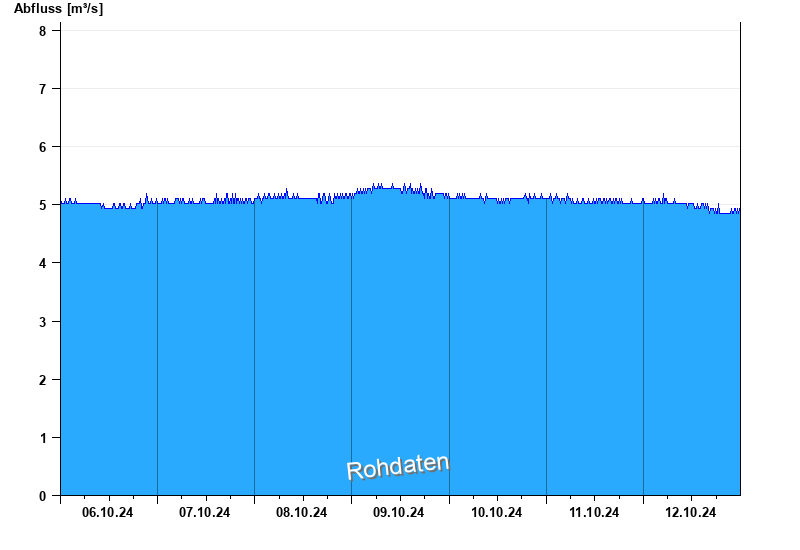 Der Pegel wird durch Baumaßnahmen unterhalb beeinflusst (Rückstau). Entsprechend sind die Abflusswerte nicht korrekt