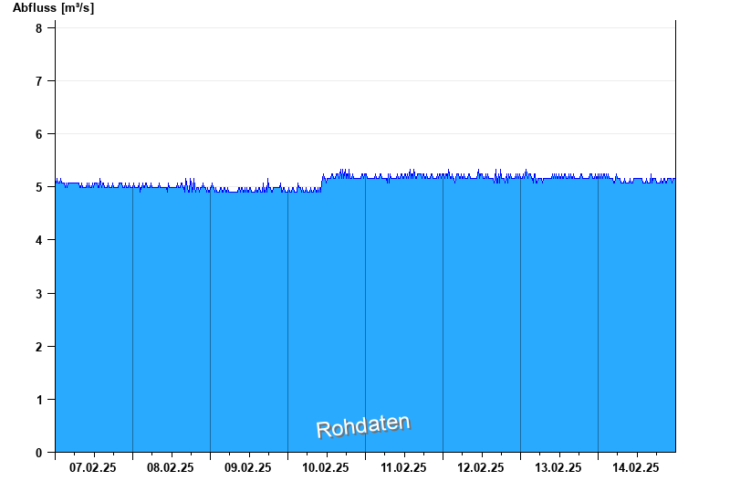 Der Pegel wird durch Baumaßnahmen unterhalb beeinflusst (Rückstau). Entsprechend sind die Abflusswerte nicht korrekt