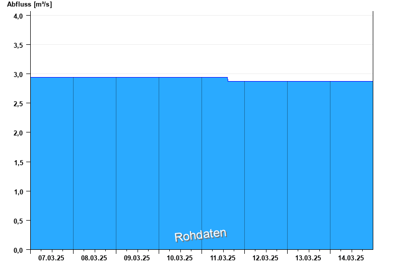 Der Pegel wird durch Baumaßnahmen unterhalb beeinflusst (Rückstau). Entsprechend sind die Abflusswerte nicht korrekt
