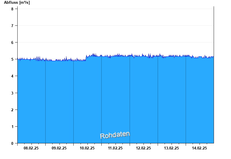 Der Pegel wird durch Baumaßnahmen unterhalb beeinflusst (Rückstau). Entsprechend sind die Abflusswerte nicht korrekt