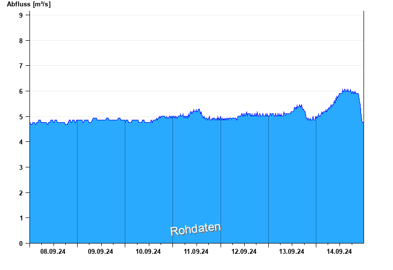 Der Pegel wird durch Baumaßnahmen unterhalb beeinflusst (Rückstau). Entsprechend sind die Abflusswerte nicht korrekt