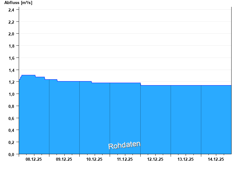 Der Pegel wird durch Baumaßnahmen unterhalb beeinflusst (Rückstau). Entsprechend sind die Abflusswerte nicht korrekt