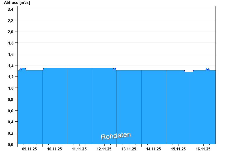 Der Pegel wird durch Baumaßnahmen unterhalb beeinflusst (Rückstau). Entsprechend sind die Abflusswerte nicht korrekt