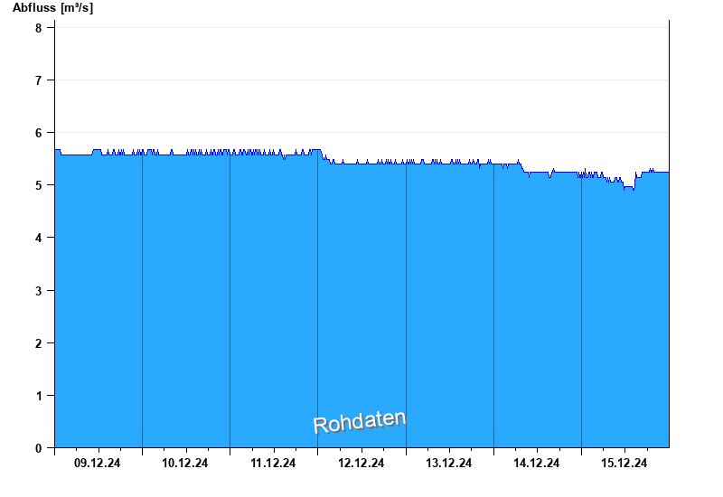 Der Pegel wird durch Baumaßnahmen unterhalb beeinflusst (Rückstau). Entsprechend sind die Abflusswerte nicht korrekt