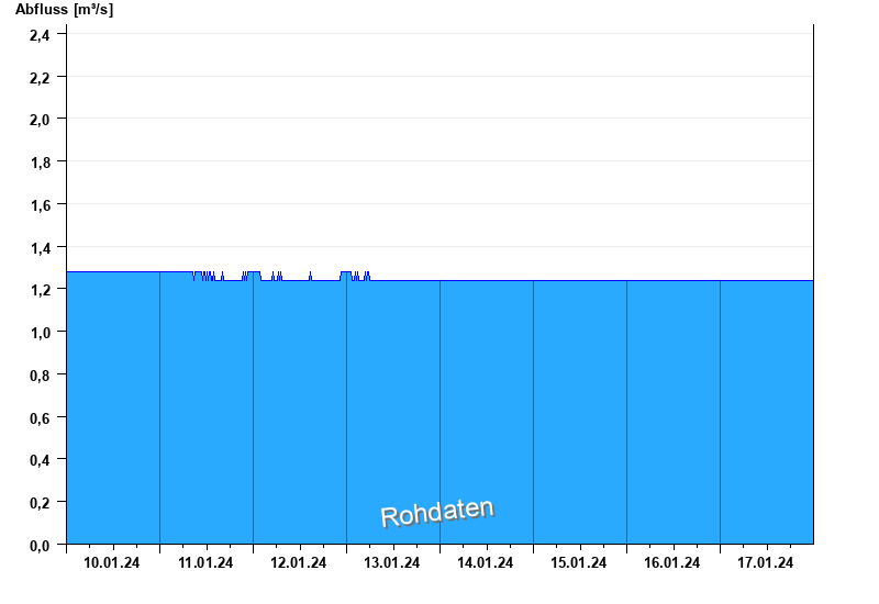 Der Pegel wird durch Baumaßnahmen unterhalb beeinflusst (Rückstau). Entsprechend sind die Abflusswerte nicht korrekt