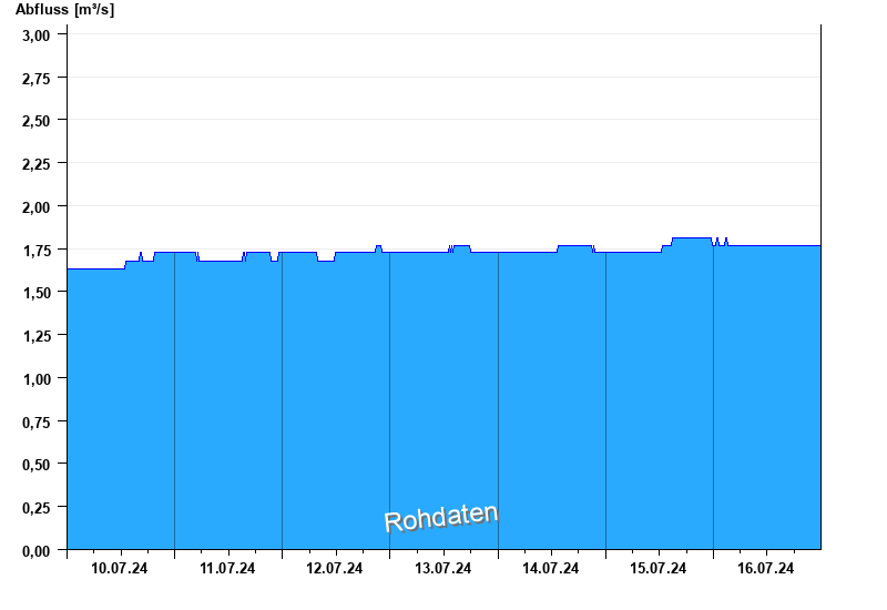 Der Pegel wird durch Baumaßnahmen unterhalb beeinflusst (Rückstau). Entsprechend sind die Abflusswerte nicht korrekt