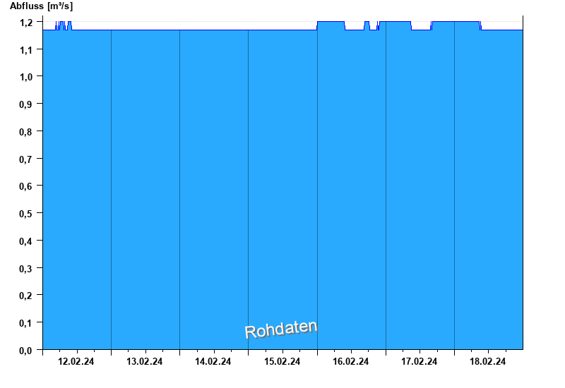Der Pegel wird durch Baumaßnahmen unterhalb beeinflusst (Rückstau). Entsprechend sind die Abflusswerte nicht korrekt