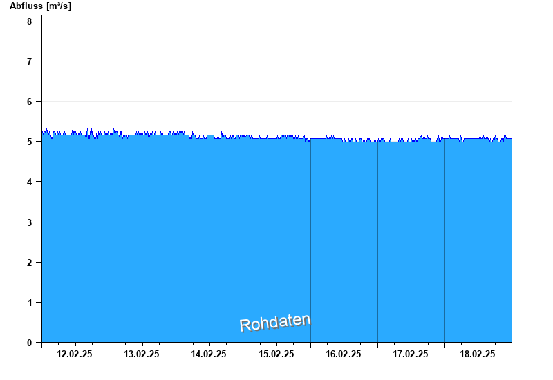 Der Pegel wird durch Baumaßnahmen unterhalb beeinflusst (Rückstau). Entsprechend sind die Abflusswerte nicht korrekt