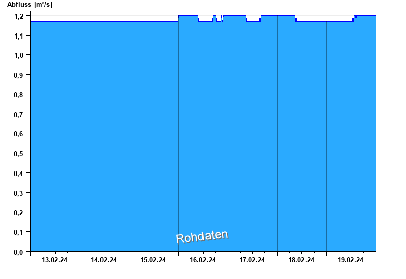 Der Pegel wird durch Baumaßnahmen unterhalb beeinflusst (Rückstau). Entsprechend sind die Abflusswerte nicht korrekt