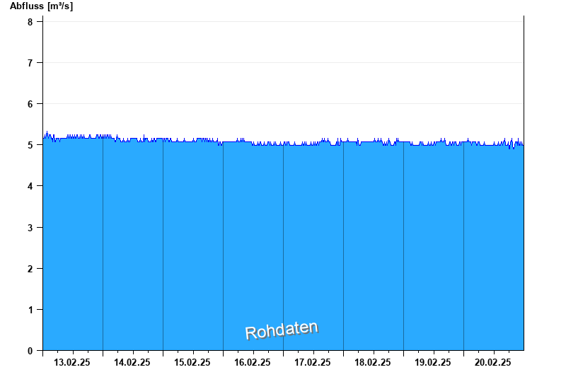 Der Pegel wird durch Baumaßnahmen unterhalb beeinflusst (Rückstau). Entsprechend sind die Abflusswerte nicht korrekt