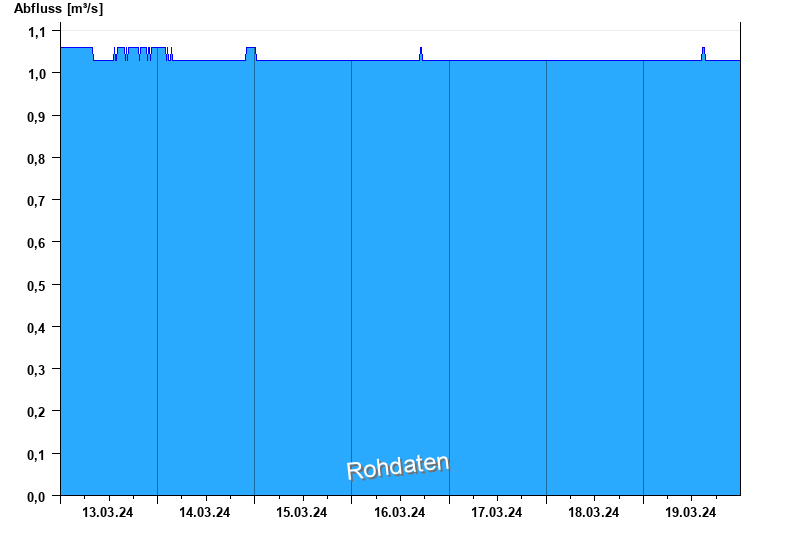 Der Pegel wird durch Baumaßnahmen unterhalb beeinflusst (Rückstau). Entsprechend sind die Abflusswerte nicht korrekt
