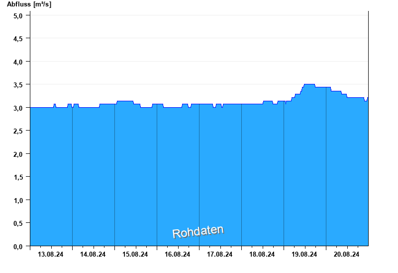 Der Pegel wird durch Baumaßnahmen unterhalb beeinflusst (Rückstau). Entsprechend sind die Abflusswerte nicht korrekt
