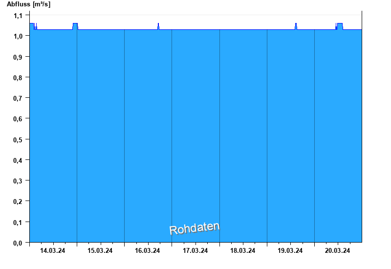 Der Pegel wird durch Baumaßnahmen unterhalb beeinflusst (Rückstau). Entsprechend sind die Abflusswerte nicht korrekt
