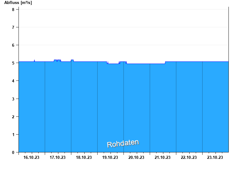 Der Pegel wird durch Baumaßnahmen unterhalb beeinflusst (Rückstau). Entsprechend sind die Abflusswerte nicht korrekt