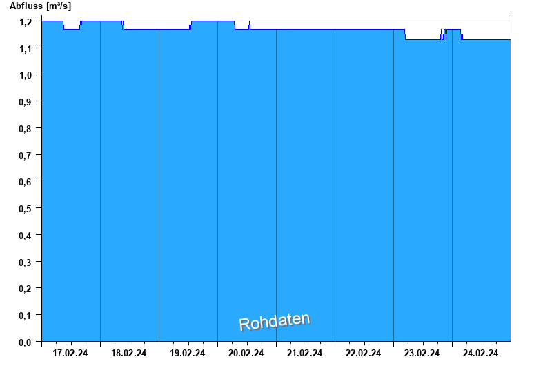Der Pegel wird durch Baumaßnahmen unterhalb beeinflusst (Rückstau). Entsprechend sind die Abflusswerte nicht korrekt