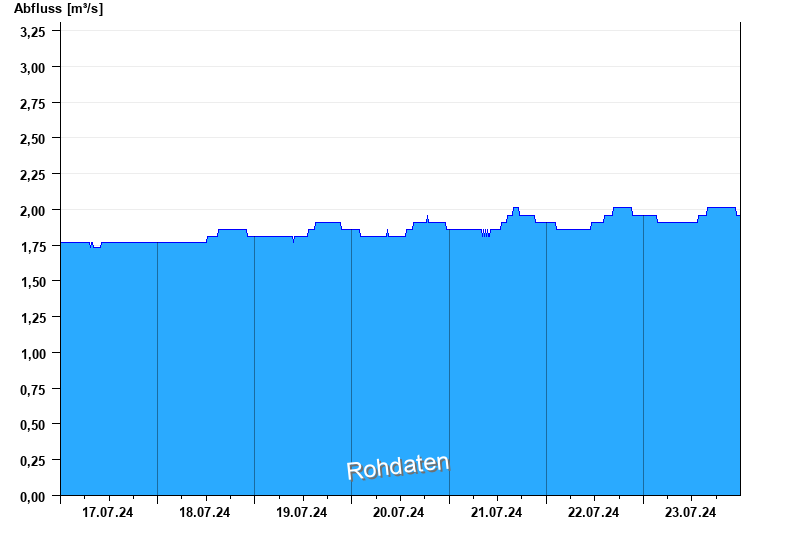Der Pegel wird durch Baumaßnahmen unterhalb beeinflusst (Rückstau). Entsprechend sind die Abflusswerte nicht korrekt