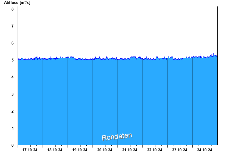 Der Pegel wird durch Baumaßnahmen unterhalb beeinflusst (Rückstau). Entsprechend sind die Abflusswerte nicht korrekt