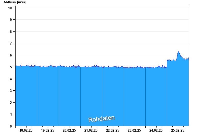 Der Pegel wird durch Baumaßnahmen unterhalb beeinflusst (Rückstau). Entsprechend sind die Abflusswerte nicht korrekt