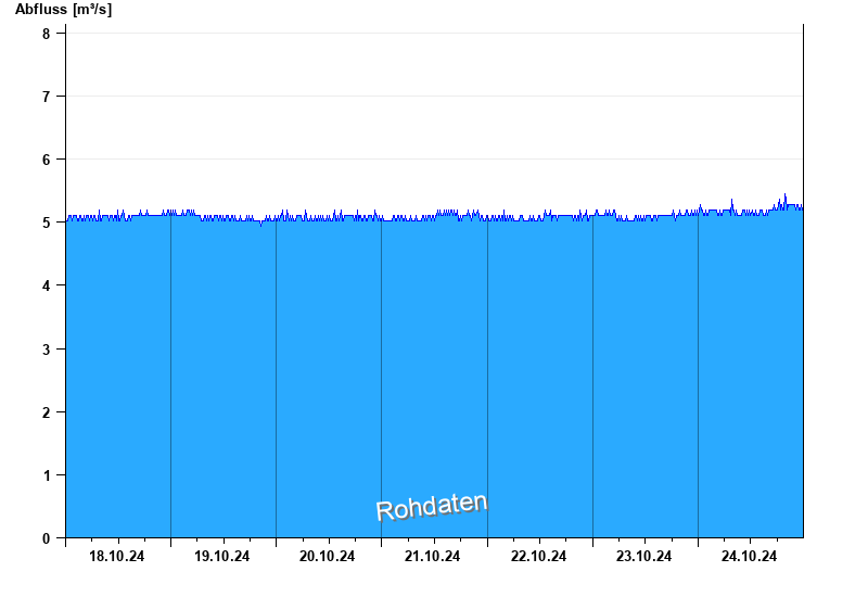 Der Pegel wird durch Baumaßnahmen unterhalb beeinflusst (Rückstau). Entsprechend sind die Abflusswerte nicht korrekt