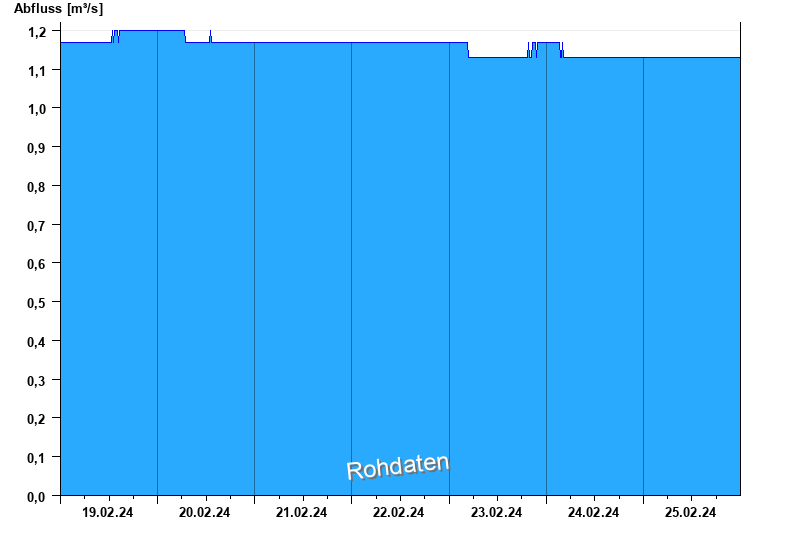 Der Pegel wird durch Baumaßnahmen unterhalb beeinflusst (Rückstau). Entsprechend sind die Abflusswerte nicht korrekt