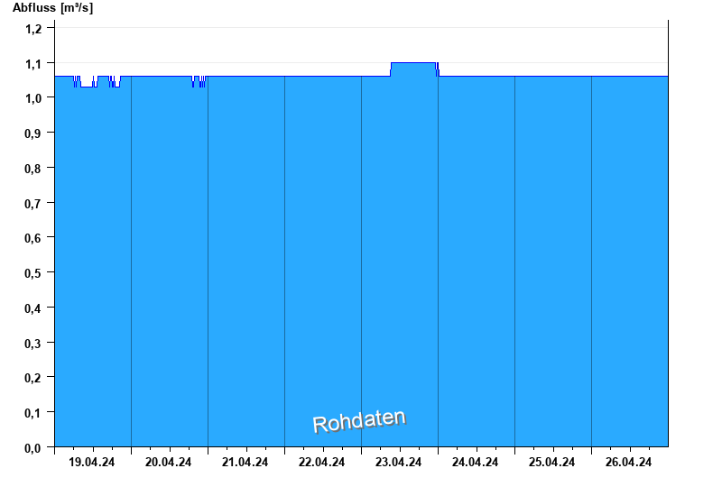 Der Pegel wird durch Baumaßnahmen unterhalb beeinflusst (Rückstau). Entsprechend sind die Abflusswerte nicht korrekt