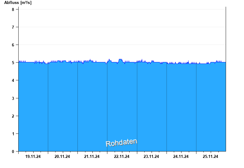 Der Pegel wird durch Baumaßnahmen unterhalb beeinflusst (Rückstau). Entsprechend sind die Abflusswerte nicht korrekt