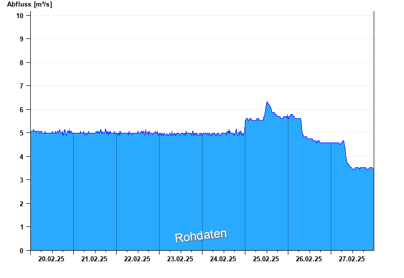 Der Pegel wird durch Baumaßnahmen unterhalb beeinflusst (Rückstau). Entsprechend sind die Abflusswerte nicht korrekt