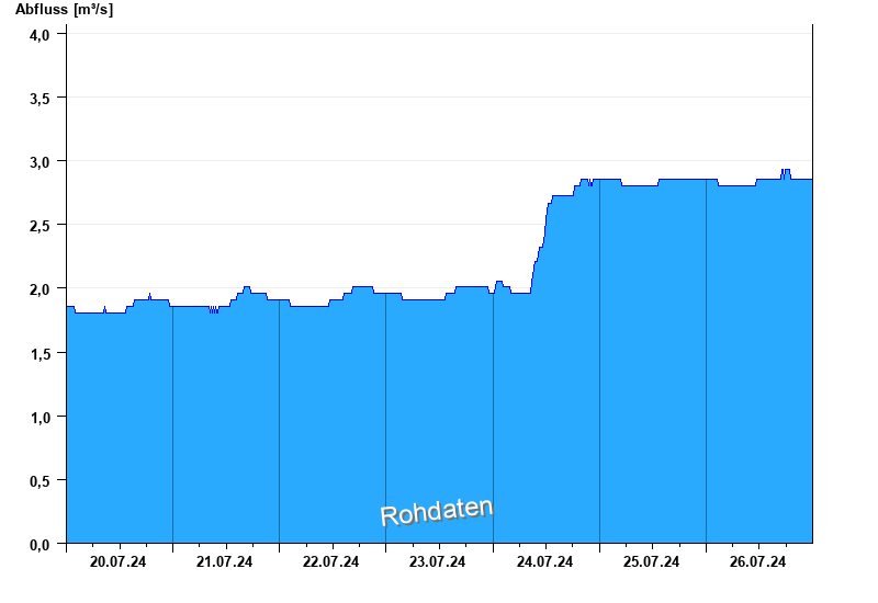 Der Pegel wird durch Baumaßnahmen unterhalb beeinflusst (Rückstau). Entsprechend sind die Abflusswerte nicht korrekt