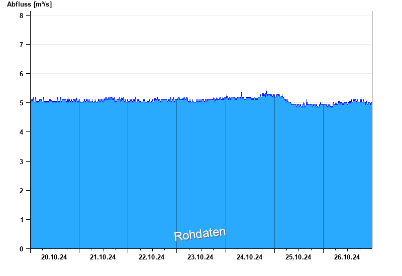 Der Pegel wird durch Baumaßnahmen unterhalb beeinflusst (Rückstau). Entsprechend sind die Abflusswerte nicht korrekt