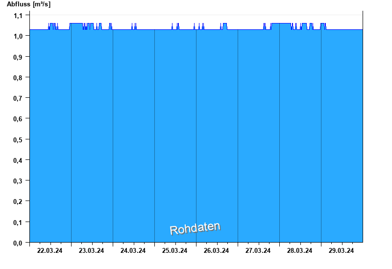 Der Pegel wird durch Baumaßnahmen unterhalb beeinflusst (Rückstau). Entsprechend sind die Abflusswerte nicht korrekt