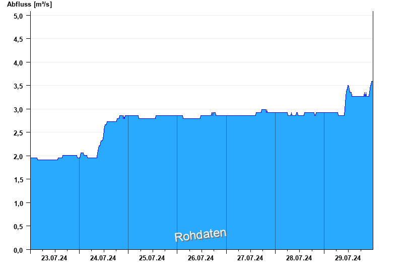 Der Pegel wird durch Baumaßnahmen unterhalb beeinflusst (Rückstau). Entsprechend sind die Abflusswerte nicht korrekt
