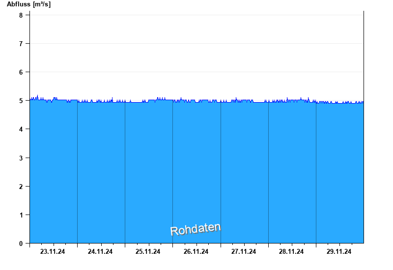 Der Pegel wird durch Baumaßnahmen unterhalb beeinflusst (Rückstau). Entsprechend sind die Abflusswerte nicht korrekt