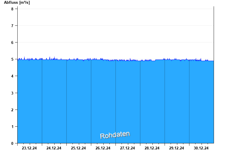 Der Pegel wird durch Baumaßnahmen unterhalb beeinflusst (Rückstau). Entsprechend sind die Abflusswerte nicht korrekt