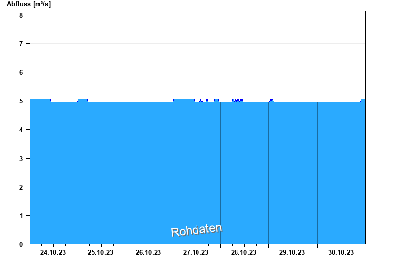 Der Pegel wird durch Baumaßnahmen unterhalb beeinflusst (Rückstau). Entsprechend sind die Abflusswerte nicht korrekt