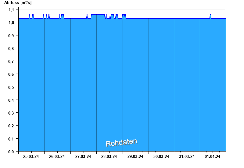 Der Pegel wird durch Baumaßnahmen unterhalb beeinflusst (Rückstau). Entsprechend sind die Abflusswerte nicht korrekt