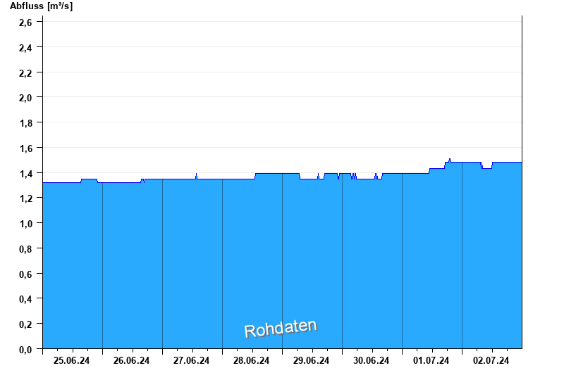 Der Pegel wird durch Baumaßnahmen unterhalb beeinflusst (Rückstau). Entsprechend sind die Abflusswerte nicht korrekt