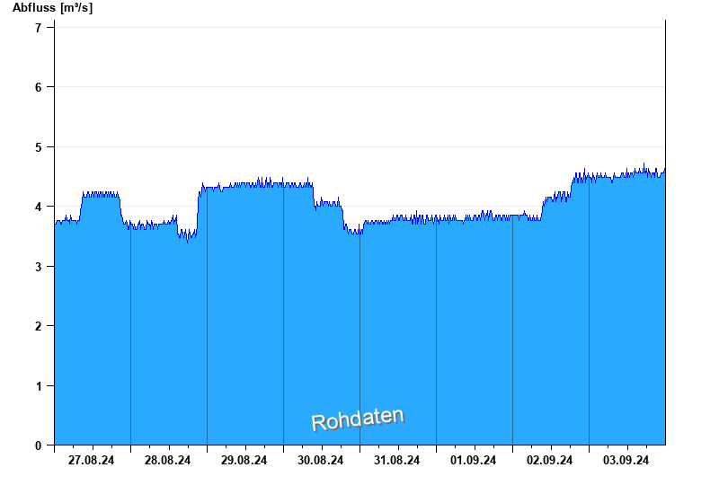 Der Pegel wird durch Baumaßnahmen unterhalb beeinflusst (Rückstau). Entsprechend sind die Abflusswerte nicht korrekt