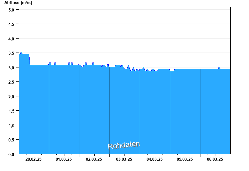 Der Pegel wird durch Baumaßnahmen unterhalb beeinflusst (Rückstau). Entsprechend sind die Abflusswerte nicht korrekt