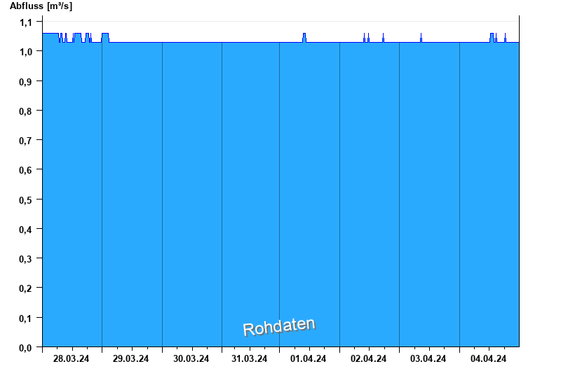 Der Pegel wird durch Baumaßnahmen unterhalb beeinflusst (Rückstau). Entsprechend sind die Abflusswerte nicht korrekt