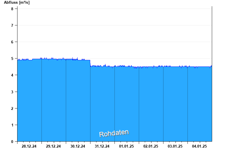 Der Pegel wird durch Baumaßnahmen unterhalb beeinflusst (Rückstau). Entsprechend sind die Abflusswerte nicht korrekt